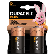 Battery: Duracell Plus D cell 1.5V (2 per pack)