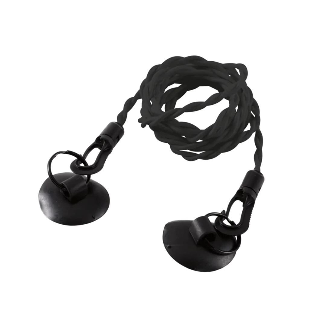 - Carbines and suction cups for easy setup on objects as trees, poles and car doors