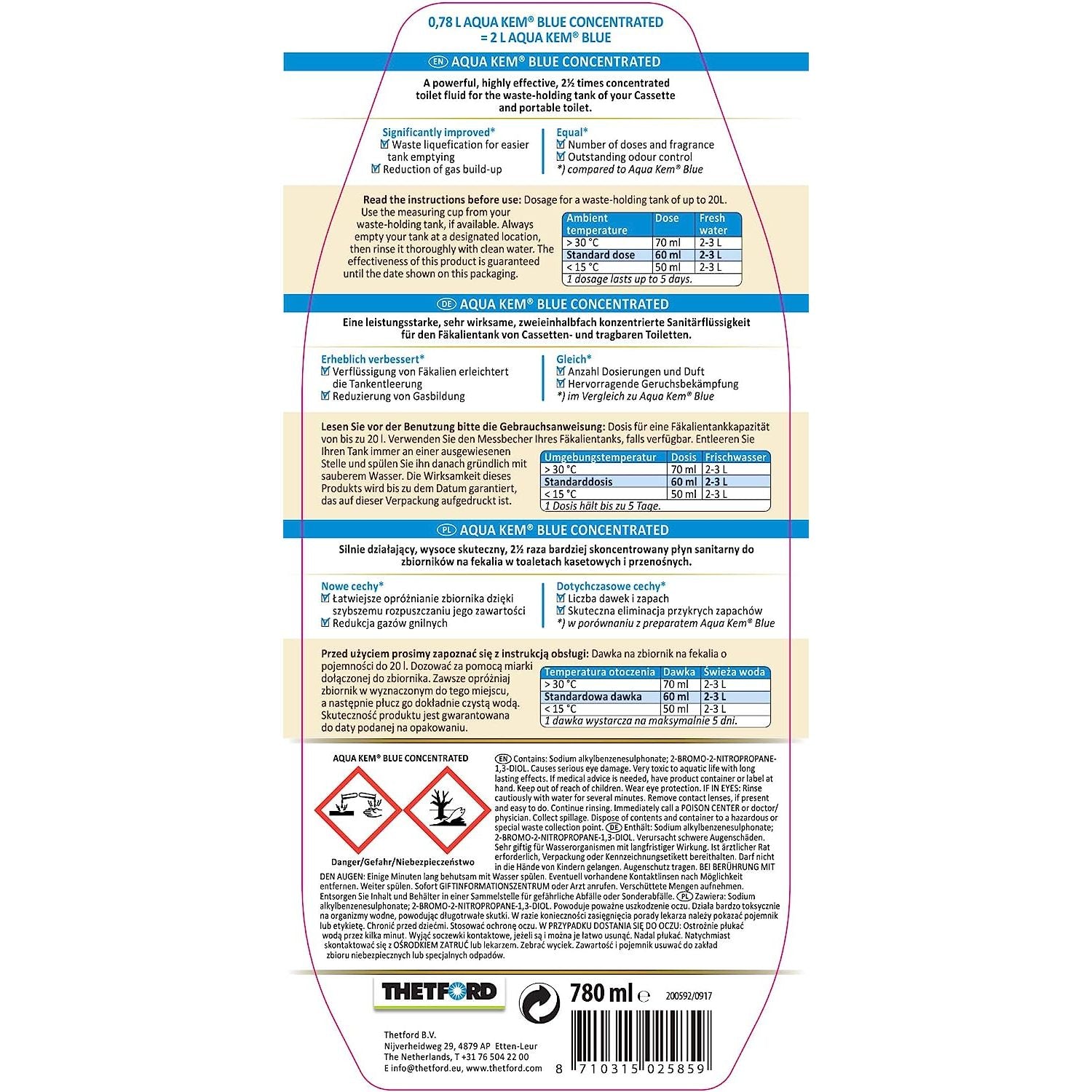 - Equal number of dosages to the Aqua Kem Blue 2L